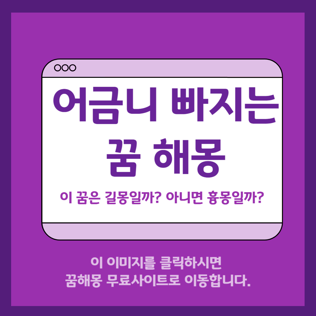 아래 사이트는 무료로 다양한 유형의 꿈에 대한 해몽을 간단히 제공해주는 사이트입니다. 본 블로그와는 어떠한 관련도 없지만 꿈 해몽과 관련하여 궁금해 하시는 분들에게 유용한 정보를 무료로 제공해 줄 수 있어서 추천드립니다. 관심 있으신 분들은 방문해 보시면 꿈해몽 관련 도움 받으실 수 있습니다.