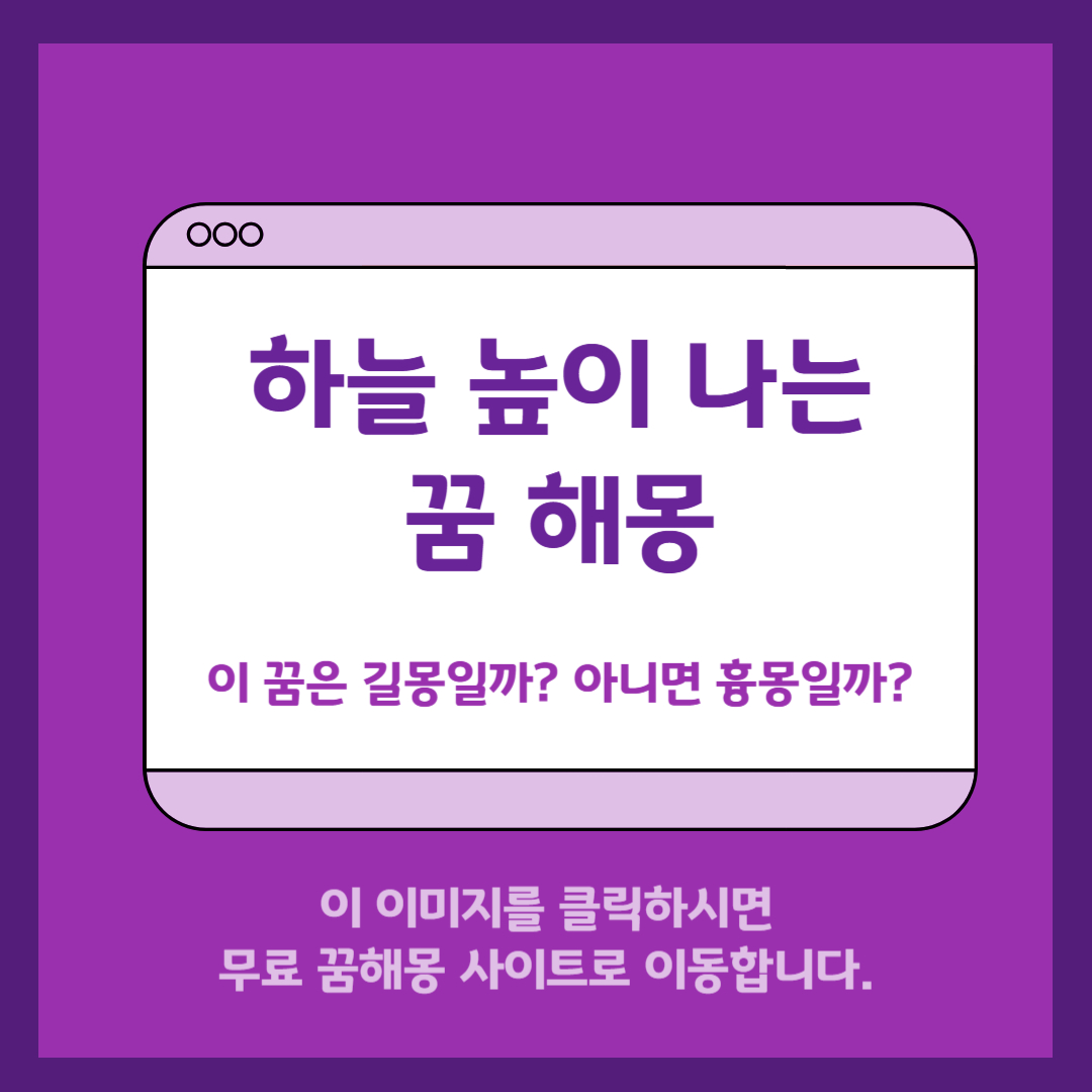 전통적으로 하늘 높이 나는 꿈은 길몽으로 해석되는 경우가 많습니다. 특히 지위나 명성이 높아질 징조로 여기며, 높은 지위를 얻거나 사업이 번창할 가능성을 나타내기도 합니다. 다만, 날다가 갑자기 추락하거나 두려움을 느꼈다면 오히려 흉몽으로 경고의 의미가 될 수도 있습니다.