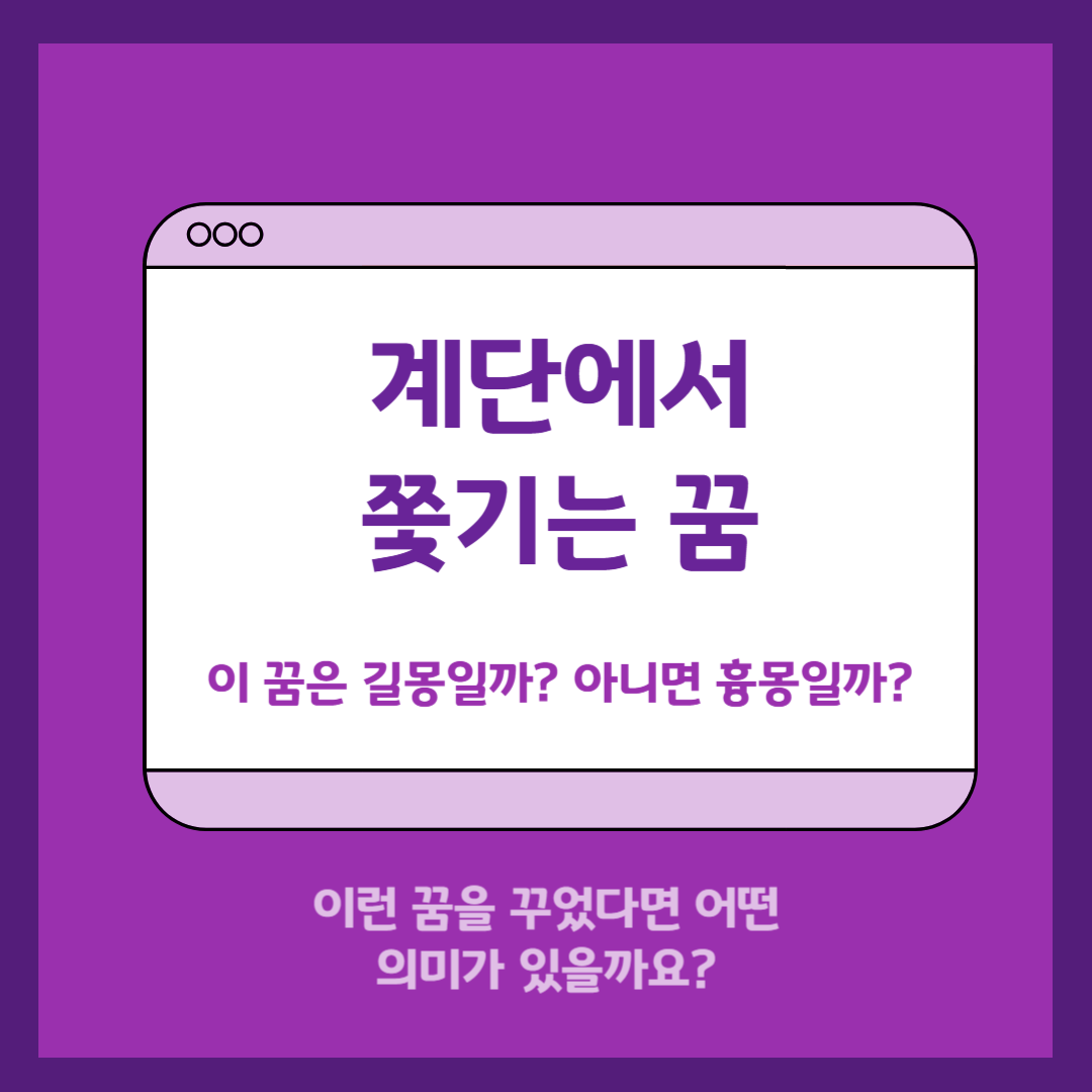 - 흉몽: 계단을 내려가다 넘어지거나 쫓겨 붙잡히는 장면은 감정의 하락세나 실패에 대한 두려움을 반영합니다.